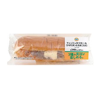 3種類の具材が楽しめるボリュームのあるロールパンです。タルタルソースをかけたフィッシュカツと、完熟トマトソースを使用したナポリタン、コクのあるたまごサラダを盛り合わせました。