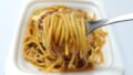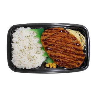 とんかつソースをかけた、大きくジューシーなメンチカツを盛り付けたお弁当です。