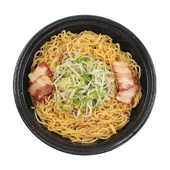 香ばしいごまの風味がきいた、ボリュームのある塩焼きそばです。ごま油で和えたねぎとチャーシュー、ブラックペッパーをトッピングしました。