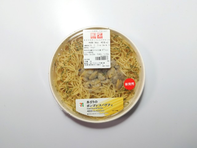 セブンイレブンの今週の新商品「あさりのボンゴレスパゲティ」を食べてみました。