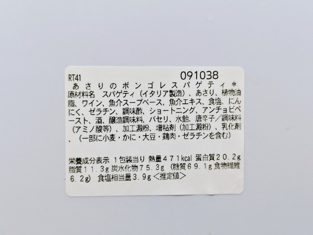 あさりのボンゴレスパゲティです。以前の購入が2025年4月2日発売だったので、約10ヶ月近く経っていますが、価格が460円(税込496.80円)から480円(税込518.40円)へと変わっています。そんなボンゴレスパゲティですが、魚介の風味とにんにくの味わいがあって、食べ出すと止まらなくなる美味しさです。あさりはふっくらとした食感とあさりの旨味があって、パスタとの相性抜群です。パスタはほどよい硬さと小麦の風味で、しっかりと食べ応えがあります。内容量は1食分にちょうどよく、お腹も満たされます。ぜひあさりのボンゴレスパゲティを食べてみてください。