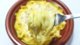 スモークチーズを混ぜ込んだベーコンバターごはんで、短冊状のモザレラチーズとチーズソースを包みました。