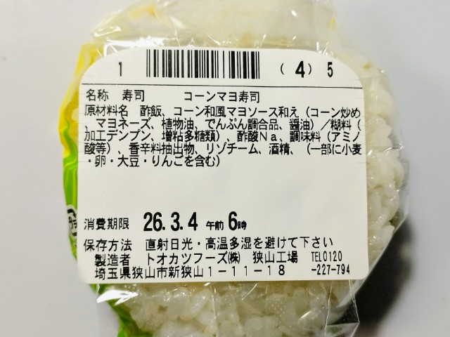 ファミリーマートの商品「コーンマヨ寿司」を食べてみました。