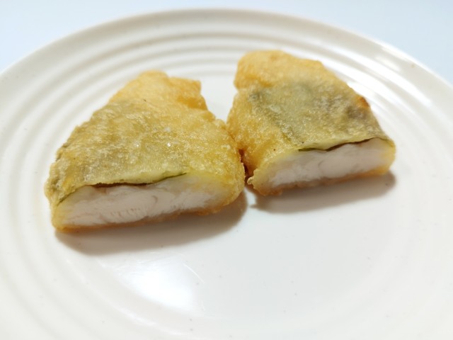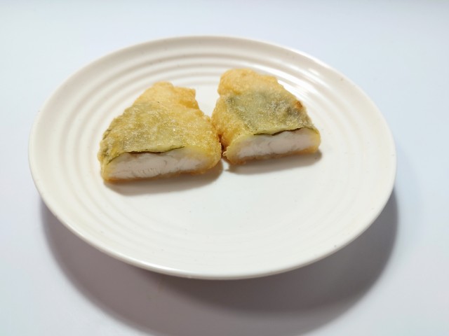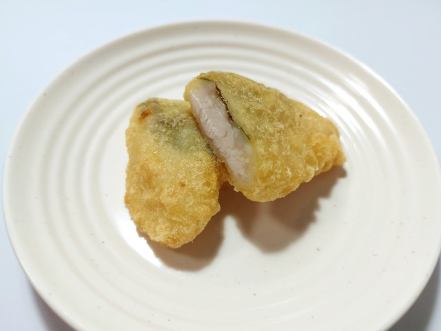 大葉と梅を使ったささみ揚げです。以前の購入が2024年6月21日発売だったので、1年以上経っていますが、価格が167円(税込180.36円)から176円(税込190.08円)に変わっています。ほぼ通年販売の商品なので、店頭で見かけたり、食べた事がある方も多いと思います。今回、新商品ではありますが、正確にはリニューアルというのが正しいのかもしれません。そんなささみ揚げですが、衣はサクッとした食感、中の鶏ささみはしっとりした食感で、間違いのない美味しさです。ポイントは一緒に入っている梅しそで、梅の酸味と大葉の風味が加わる事で、揚げ物ながらさっぱりと食べられます。今回はそのまま食べましたが、ご飯のおかずはもちろん、そばやうどんのトッピングにもオススメです。ぜひささみ揚げを食べてみて下さい。