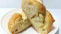 黄色いパン生地に黒いカレーフィリングを挟んだカレーパンです。