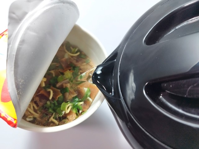 2種類の液体スープを入れて、よく混ぜたら完成です。