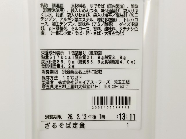 ファミリーマートの商品「石臼挽きそば粉使用 ざるそば定食」を食べてみました。
