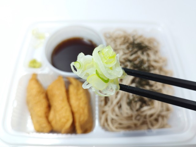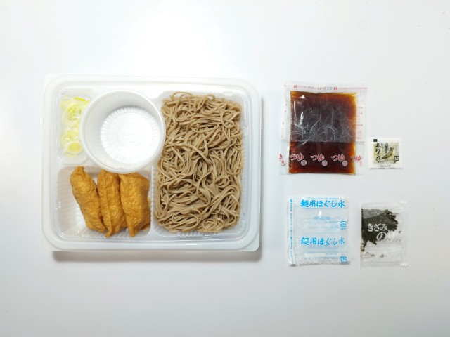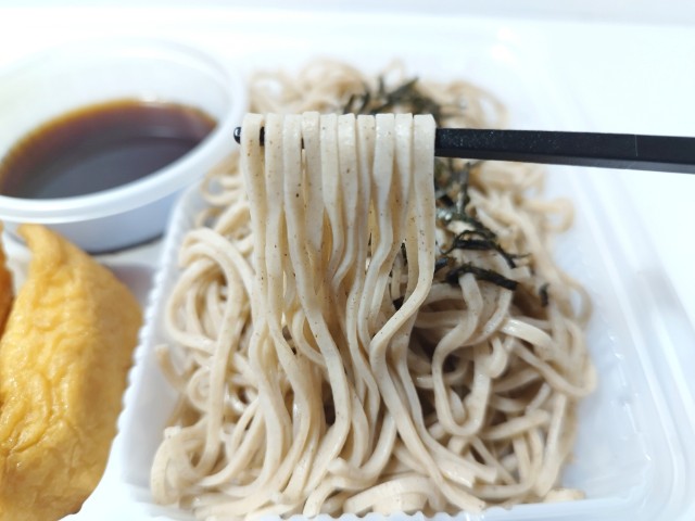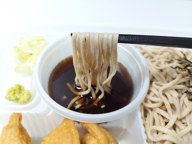 ざるそばといなり寿司のセットです。以前の購入が2025年5月27日発売だったので、約9ヶ月近く経っていますが、価格が554円(税込598円)から584円(税込630円)へと変わっています。そんなざるそば定食ですが、そばはそばの風味と歯切れの良さがあって、間違いのない美味しさです。つゆはだしの旨味とほのかな甘味で、そばとの相性抜群です。いなり寿司は甘味のあるお揚げと酸味の効いた酢飯とのバランスが良く、そばの合間に食べると口の中が一旦リセットされて、またそばを美味しく食べられます。内容量は1食分にちょうどよく、お腹も満たされます。ぜひざるそば定食を食べてみてください。