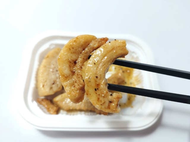 ねぎ塩だれの豚とろ焼きです。以前の購入が2025年1月2日だったので、1年以上経っていますが、価格が298円(税込321.84円)から338円(税込365.04円)に変わっています。ほぼ通年販売の商品なので、店頭で見かけたり、食べた事がある方も多いと思います。そんな豚とろ焼きですが、豚とろは豚の旨味と弾力のある肉質、ジューシーな脂で、間違いのない美味しさになっています。ねぎ塩だれはねぎの風味とほどよい塩味、ごま油の香りで、豚とろとの相性抜群です。今回はそのまま食べていますが、ご飯の上にのせて豚とろ丼にしても美味しいと思います。内容量は一人分にちょうどよく、おつまみやご飯のおかずにピッタリです。ぜひ豚とろ焼きを食べてみてください。