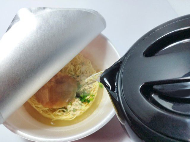 待っている間はフタの上で液体スープと黒香油、辛みそを温めます。