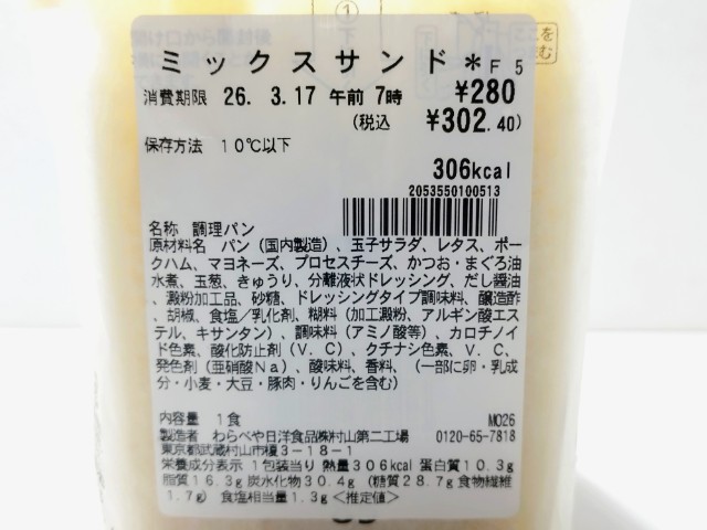 ツナサラダとハムレタス、玉子サラダの3種類が入ったサンドイッチです。以前の購入が2025年3月25日発売だったので、約1年近く経っていますが、価格が250円(税込270円)から280円(税込302.40円)に変わっています。ほぼ通年販売の商品なので、店頭で見かけたり、食べたことがある方も多いと思います。今回、新商品ではありますが、正確にはリニューアルというのが正しいのかもしれません。そんなミックスサンドですが、定番具材を集めて色々な味を楽しめるのがミックスサンドの特長だと思います。ツナサンドはツナサラダが端まで入っていて、定番の味で食べやすいです。ハムレタスサンドはハムの塩味とレタスの食感を楽しむことができます。たまごサンドはたまごのコクと旨味があって、間違いのない美味しさです。それぞれ全く違う味や食感なので、最後まで飽きずに食べられます。大きさは普通のサンドイッチサイズで、朝食や小腹が空いた時にピッタリです。ぜひミックスサンドを食べてみてください。