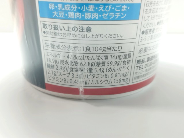熱量:472kcal、たんぱく質:14.0g、脂質:18.9g、炭水化物:62.8g(糖質:59.9g、食物繊維:2.9g)、食塩相当量:5.4g