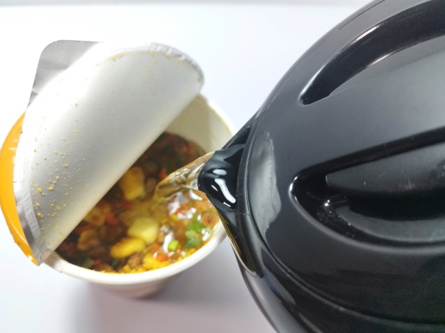 お湯を入れて、フタをして3分待ちます。