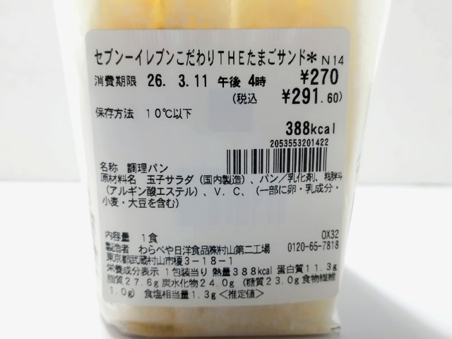 以前に購入した商品は2025年3月25日発売で商品名がたまごサンドでした↓
