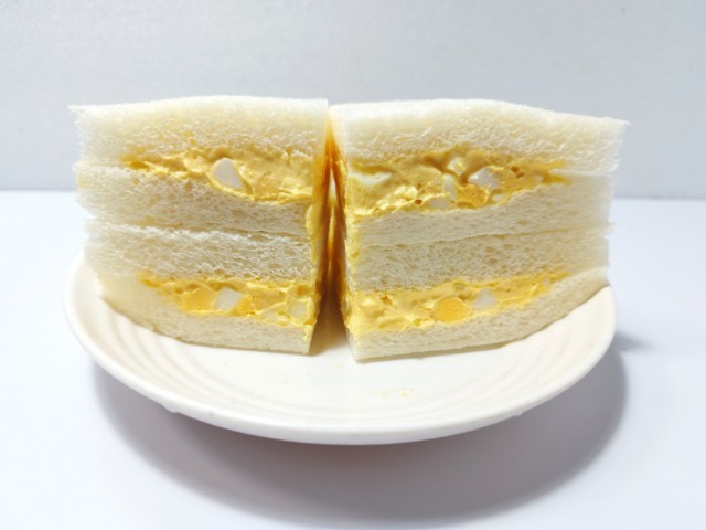 たまごサラダを挟んだサンドイッチです。以前の購入が2025年12月10日発売だったので、約3ヶ月近く経っていますが、価格は変わっていません。ほぼ通年販売の商品なので、店頭で見かけたり、食べた事がある方も多いと思います。今回、新商品ではありますが、正確にはリニューアルというのが正しいのかもしれません。そんなTHEたまごサンドですが、サンドイッチ生地はしっとりとした食感と歯切れの良さで、安定の美味しさです。たまごサラダはたまごの甘味とゆで卵の食感があって、サンドイッチ生地との相性抜群です。値上がりはしたものの、たまごの美味しさや食感をより楽しめるサンドイッチになっていると思います。大きさは普通のサンドイッチサイズで、朝食や小腹が空いた時にピッタリです。ぜひTHEたまごサンドを食べてみてください。