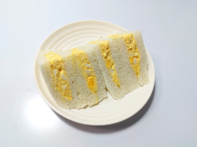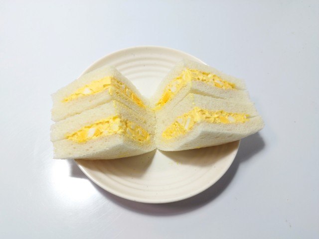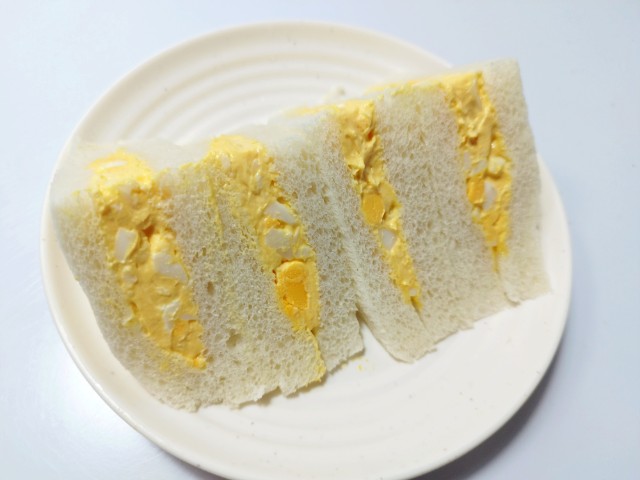たまごサラダはゆでたまご,マヨネーズ,塩コショウを使用したシンプルな味付けで、たまご本来の美味しさを感じられるサンドイッチです。