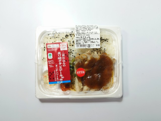 ファミリーマートの商品「二段仕込みの炙り焼チキンステーキ弁当」を食べてみました。