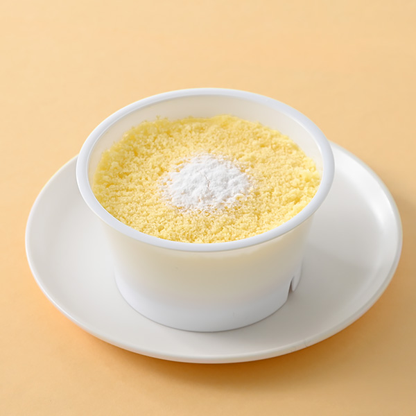チーズ入りのカスタードクリームにスポンジ生地と生クリームを加えたチーズムースを重ね、ふんわりとしたスポンジクラムをトッピングしたチーズケーキです。
