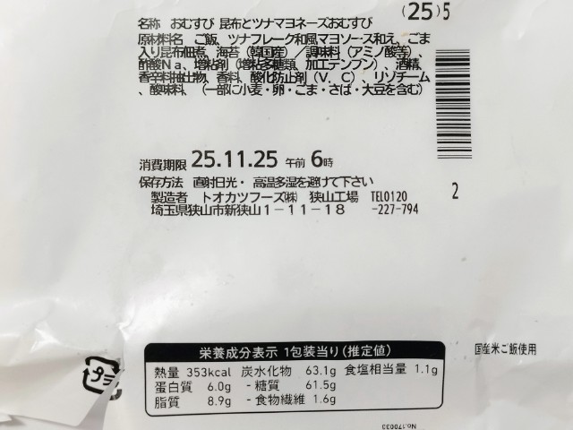 中にはツナマヨネーズ昆布が入っています。