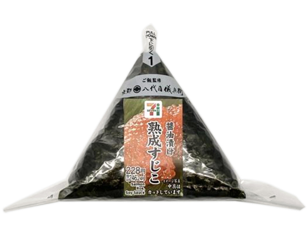 以前に購入した商品は2024年7月2日発売で商品名が味付海苔おにぎり 熟成すじこ醤油漬けでした↓