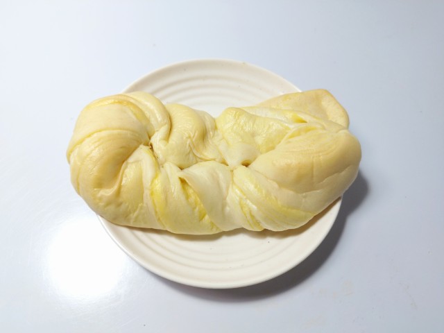 パン生地をねじりマーブル模様にした、もちもちとした食感が特長のカスタード風味の菓子パンです。