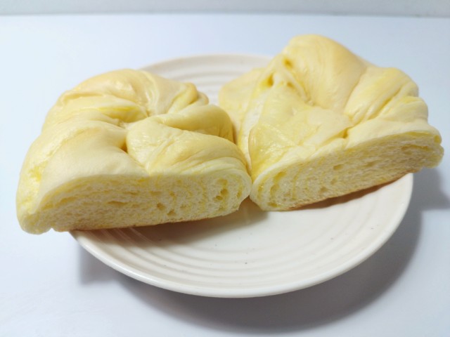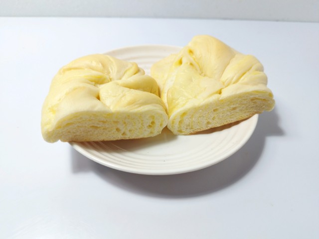 もちもち食感の菓子パンです。以前の購入が2025年9月9日発売だったので、約半年近く経っていますが、価格は変わっていません。そんなカスタードブレッドですが、生地はもちもちとした食感と歯切れの良さで、ハマってしまう美味しさです。生地にはカスタード風味のフラワーペーストが折り込まれていて、カスタードの風味とやさしい甘みがあって、もちもち生地とのバランスも良いです。菓子パンではありますが、くちどけが良くて甘過ぎないので、甘いのがちょっと苦手な方にも食べやすいと思います。大きさは普通の菓子パンサイズで、おやつや小腹が空いた時にピッタリです。ぜひもちもち食感カスタードブレッドを食べてみてください。