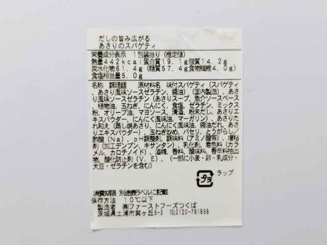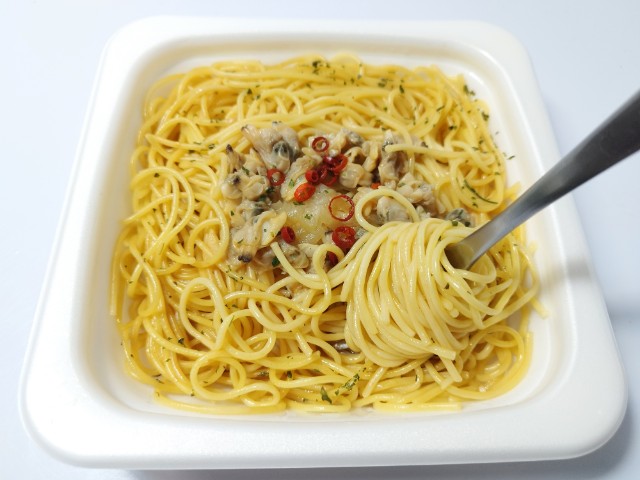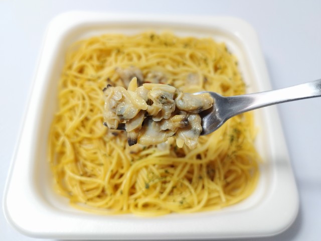 ファミリーマートの今週の新商品「だしの旨み広がる あさりのスパゲティ」を食べてみました。