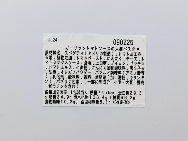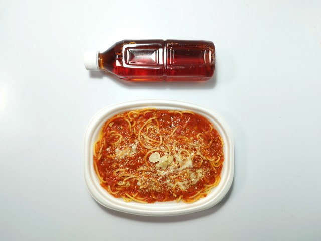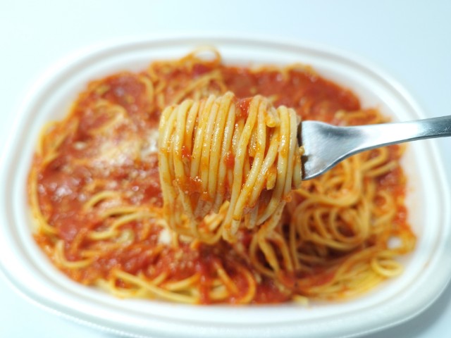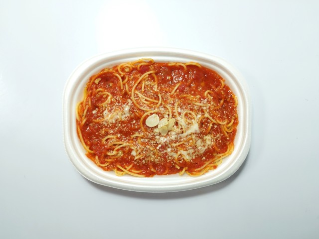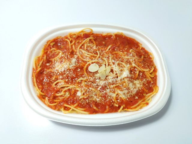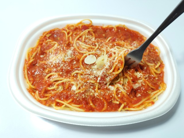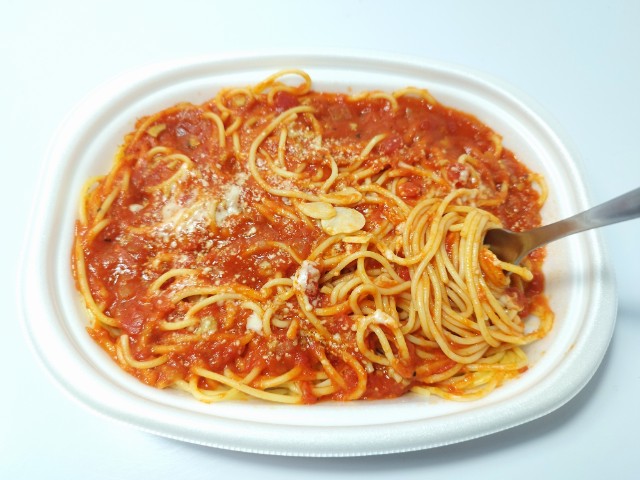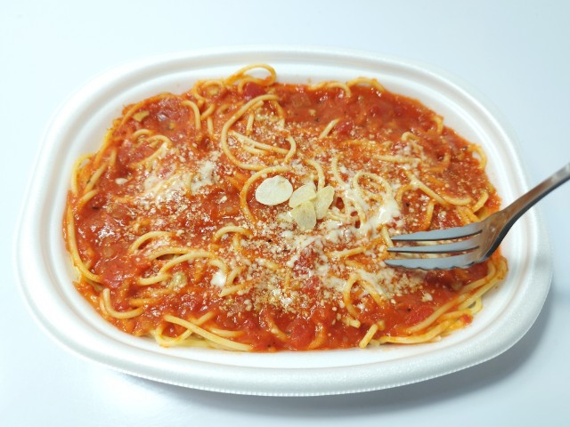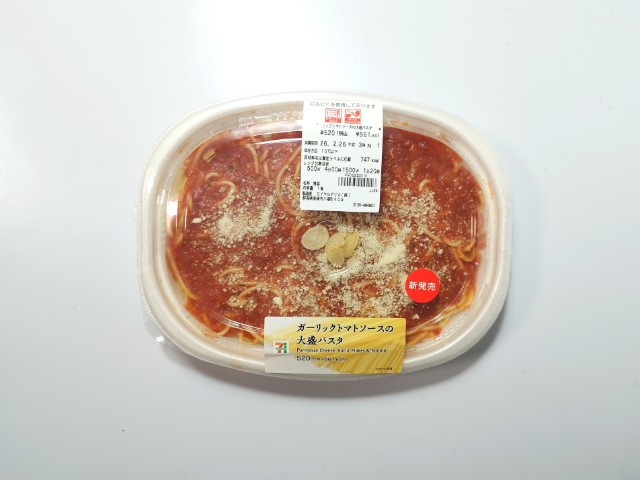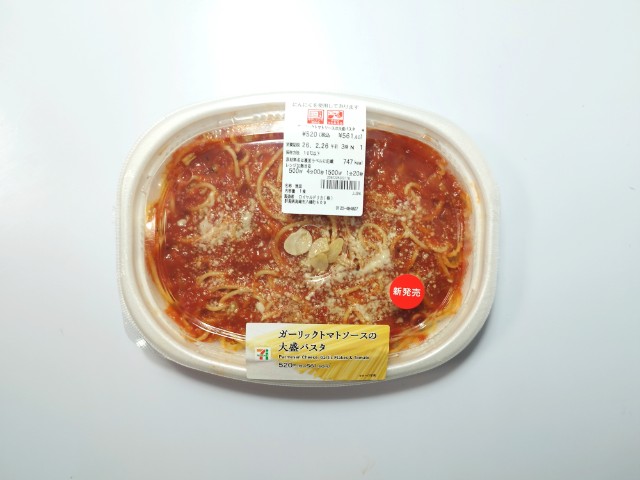 セブンイレブンの商品「ガーリックトマトソースの大盛パスタ」を食べてみました。