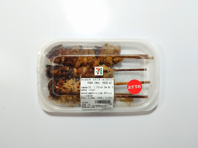 セブンイレブンの商品「炭火焼き鳥 もも3本・皮2本入り」を食べてみました。