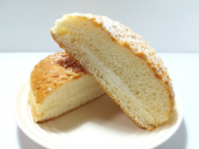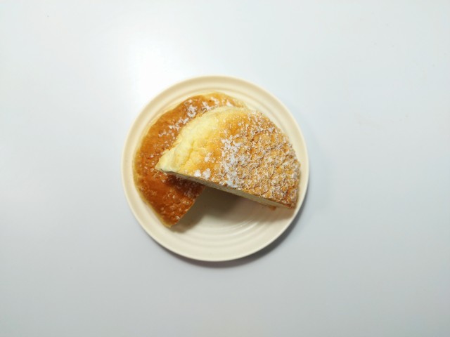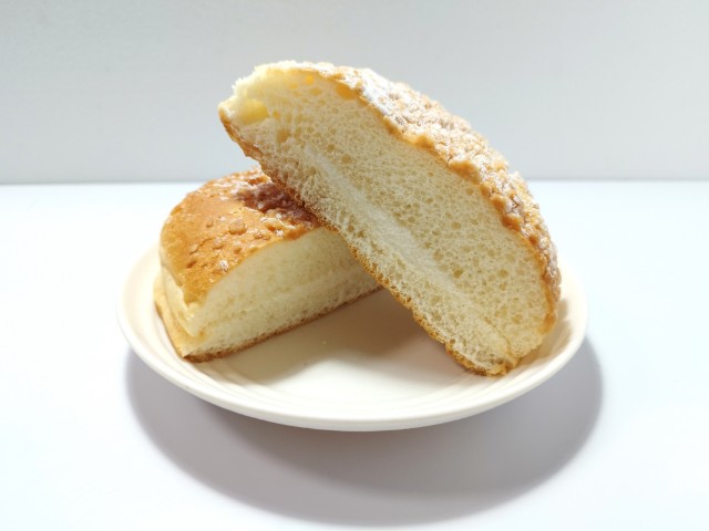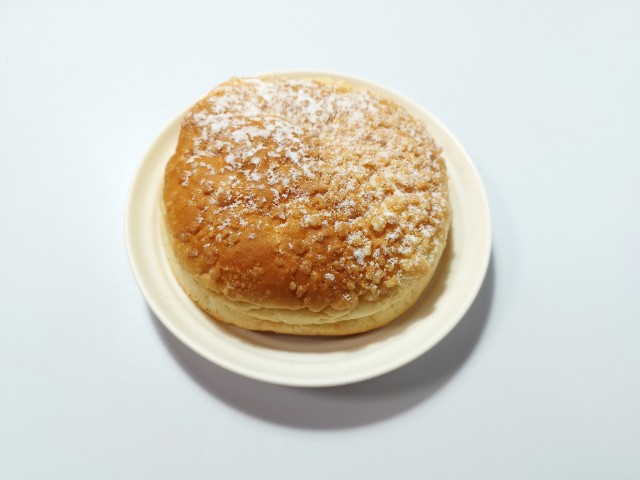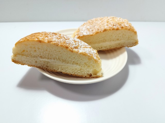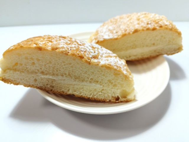 メープルシュガークリームを挟んだ菓子パンです。以前の購入が2023年10月3日発売なので約2年近く経っていますが、価格が119円(税込128円)から135円(税込145円)へと変わっています。そんなメープルシュガーサンドですが、ふんわりとした生地はもっちりとした食感と粉糖のほのかな甘味、クッキーそぼろの香ばしさがあって、ハマってしまう美味しさです。中のメープルシュガークリームはなめらかな食感とメープルの風味、ほどよい甘味で、生地とのバランスも良いです。ポイントはクリームに入っているシュガーで、シャリシャリとした食感が良いアクセントになっています。大きさは普通の菓子パンサイズで、おやつや小腹が空いた時にピッタリです。ぜひふわもち食感のメープルシュガーサンドを食べてみて下さい。