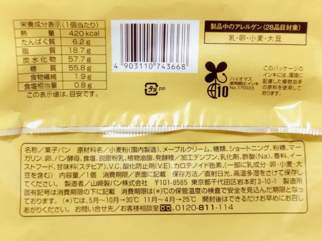 ファミリーマートの今週の新商品「ふわもち食感のメープルシュガーサンド」を食べてみました。