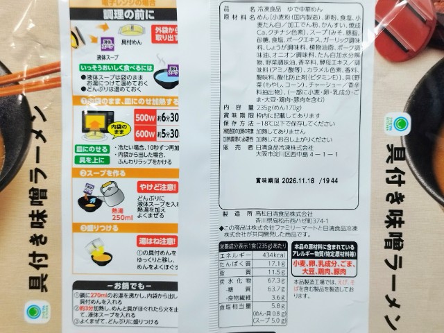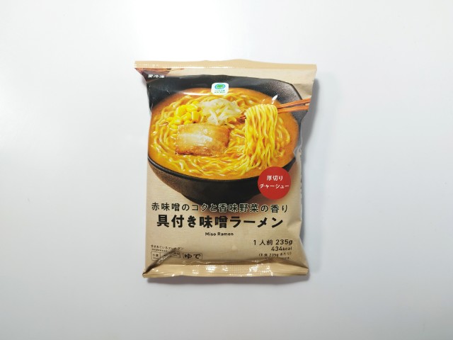 ファミリーマートの商品「赤味噌のコクと香味野菜の香り具付き味噌ラーメン」を食べてみました。