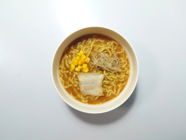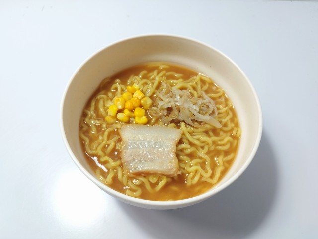冷凍食品の味噌ラーメンです。以前の購入が2023年10月20日だったので、2年以上経っていますが、価格が227円(税込245円)から258円(税込278円)に商品名がコク深い味わいの濃厚具付き味噌ラーメンから赤味噌のコクと香味野菜の香り具付き味噌ラーメンへと変わっています。そんな味噌ラーメンですが、スープは豚の旨味と赤味噌のコク、生姜の風味があって、美味しいのひと言です。中太のちぢれ麺はツルツルとした食感と小麦の風味で、濃厚な味噌スープともよく絡みます。具材にはチャーシューやもやし、コーンがのっていて、それぞれの味や食感を楽しめます。以前と比べて値上がりはしているものの、クオリティや長期保存可能といった部分を考えると十分にコスパの良い商品だと思います。内容量は1食分にちょうどよく、お腹も満たされます。ぜひ具付き味噌ラーメンを食べてみて下さい。