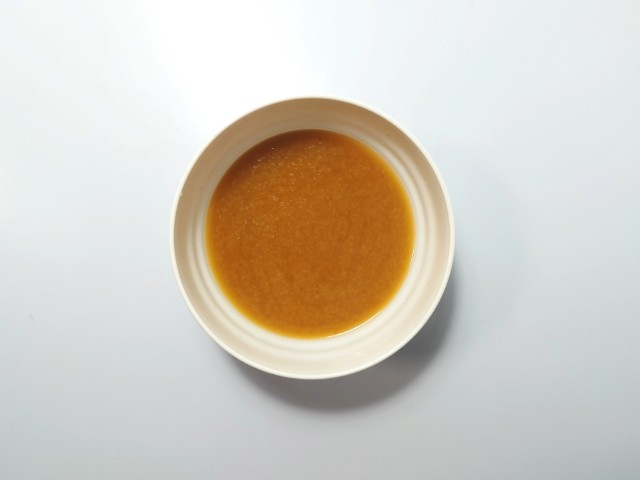 液体スープを器に入れて、お湯250mlを注ぎます。