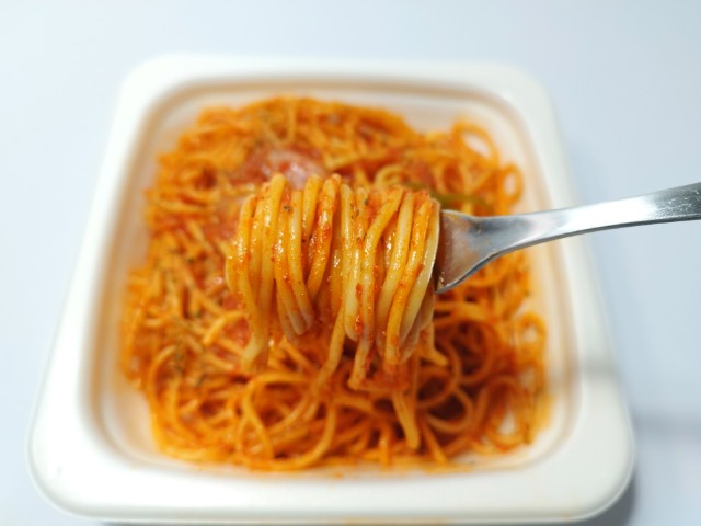 ファミリーマートのナポリタンです。以前の購入が2025年12月23日発売だったので、約3ヶ月近く経っていますが、価格が417円(税込450円)から399円(税込430円)へと変わっています。ほぼ通年販売の商品なので、店頭で見かけたり、食べた事がある方も多いと思います。今回、新商品ではありますが、正確にはリニューアルというのが正しいのかもしれません。具材や内容量などに微妙な違いがあるものの、それでも値下げがされているのは、色々と値上げが続く中ではうれしい部分だと思います。そんなファミマ・ザ・ナポリタンですが、濃厚な味わいのケチャップとほどよい酸味のトマトソースで仕上げてあって、少し高級感のあるナポリタンといった印象です。一般的にイメージするナポリタンよりも旨味とコクがしっかりとあるので、食べ終わった後の満足度も高いと思います。今回はそのまま食べましたが、追いチーズやタバスコを加えて、味変しながら食べても美味しいと思います。内容量は1食分にちょうどよく、お腹も満たされます。ぜひファミマ・ザ・ナポリタンを食べてみてください。