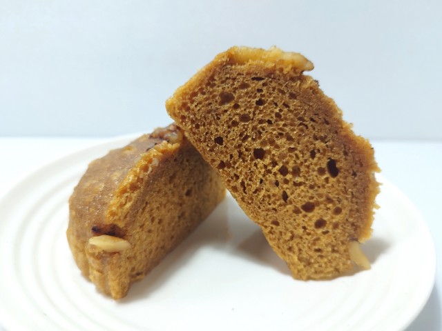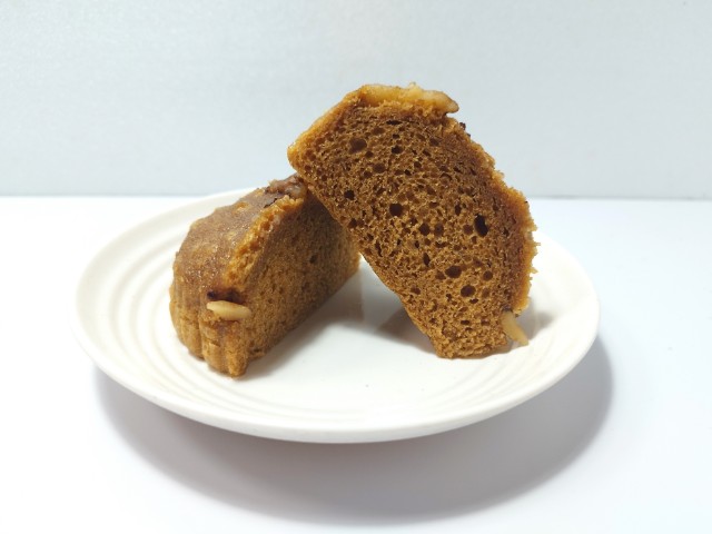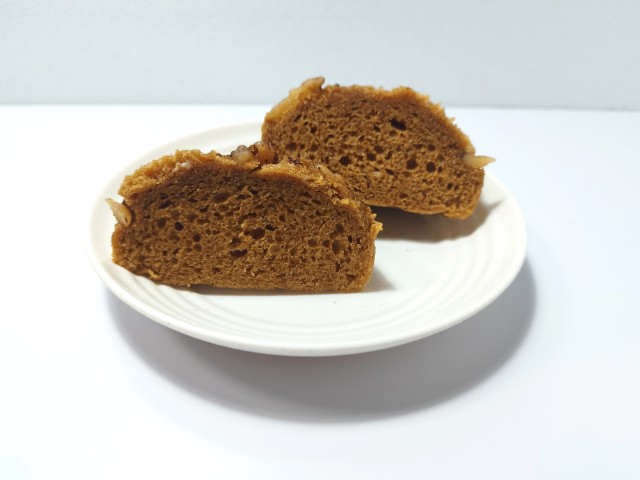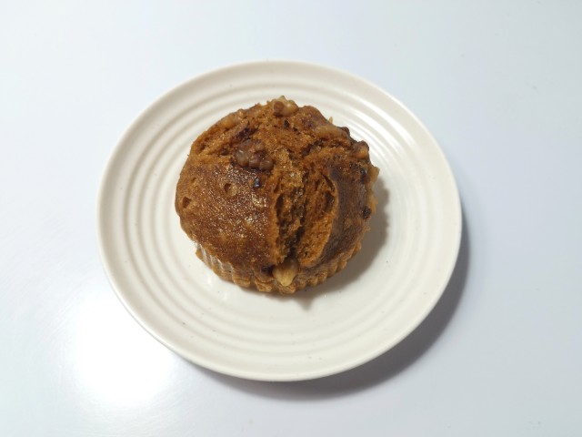 くるみがのった蒸しパンです。以前の購入が2025年1月28日発売だったので、約1年近く経っていますが、価格が118円(税込127.44円)から128円(税込138.24円)へと変わっています。そんな蒸しパンですが、生地はしっとりとした食感とほどよい甘味、黒糖の香りがあって、食べ出すと止まらなくなる美味しさです。トッピングされたくるみの食感も心地よく、最後のひと口まで飽きる事なく食べられます。食べた瞬間はしっとりながらも口の中にねっちりと残る感じで、普通の蒸しパンとはまた違った食感だと思います。大きさは普通の菓子パンサイズで、おやつや小腹が空いた時にピッタリです。ぜひくるみ蒸しぱんを食べてみてください。