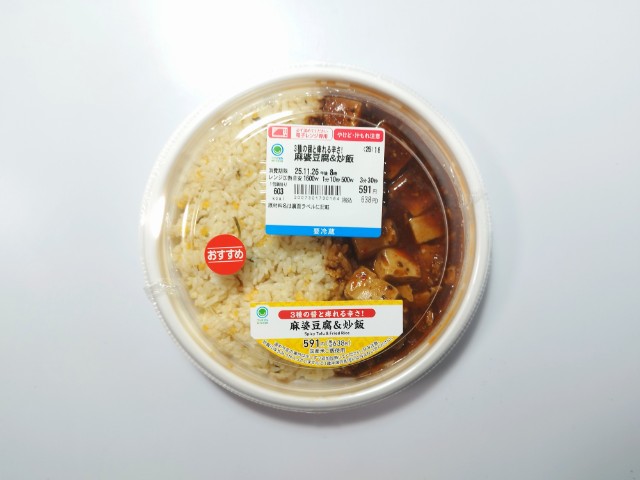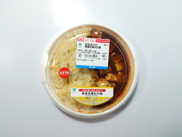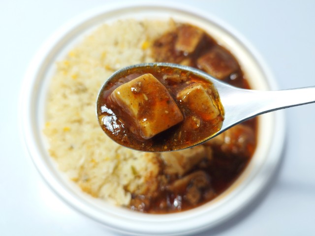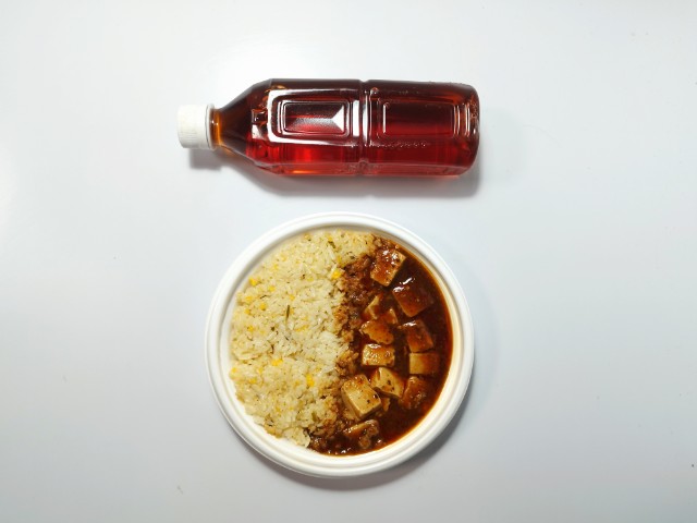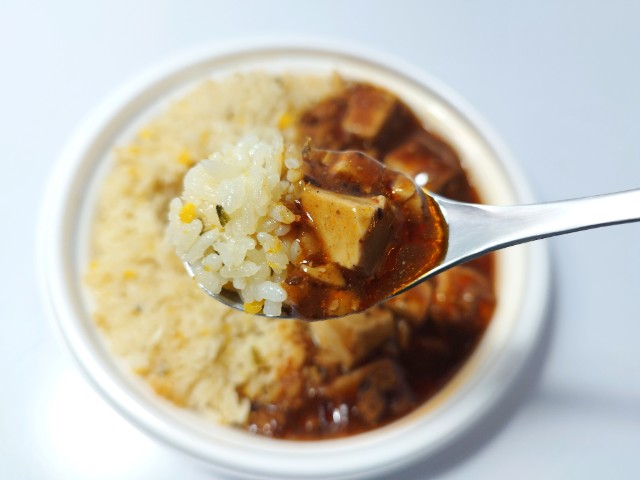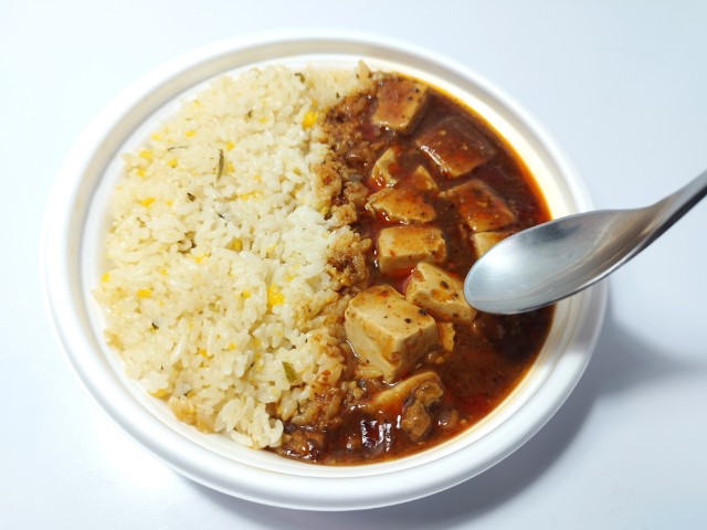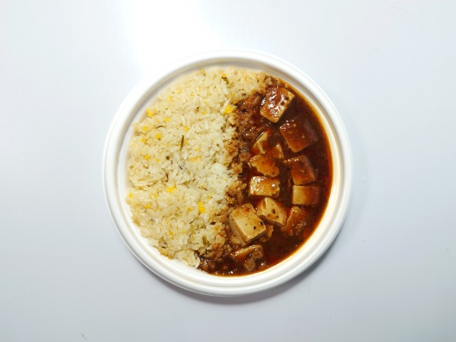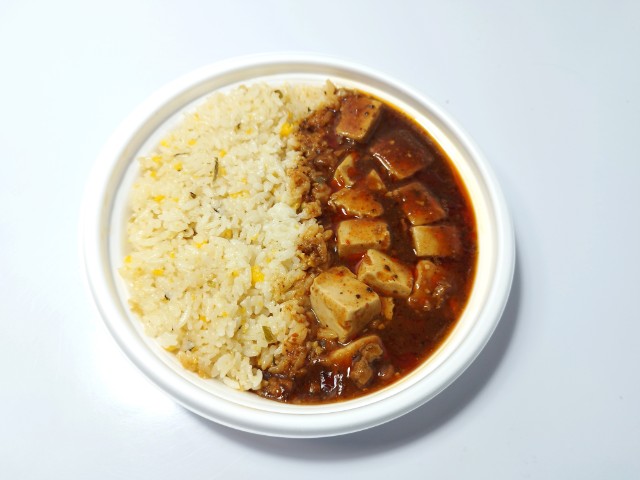 ファミリーマートの今週の新商品「3種の醤と痺れる辛さ!麻婆豆腐&炒飯」を食べてみました。
