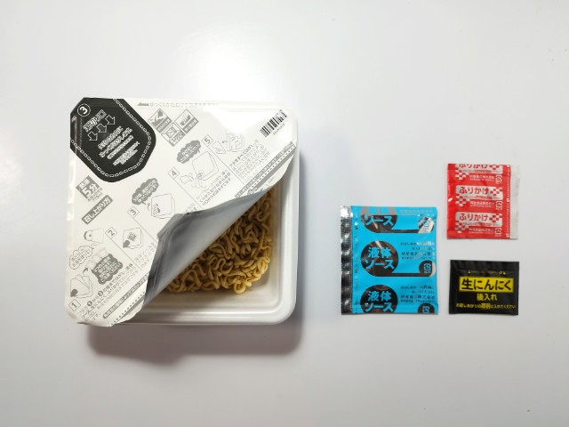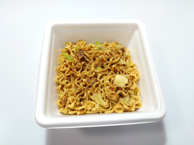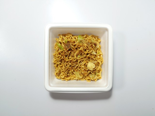 とみ田監修の豚まぜそばです。以前の購入が2024年12月10日発売だったので、約1年近く経っていますが、価格は変わっていません。そんなまぜそばですが、豚骨醤油の旨味とにんにくの風味をしっかりと感じる濃厚な味わいで、クセになってしまう美味しさです。麺は極太麺のもっちりとした食感で、ガツンとした味付けにも負けていません。具材にはキャベツやチャーシューが使われていて、それぞれの味や食感を楽しむ事が出来ます。今回は撮影の為、先に入れてしまいましたが、味変として別添のふりかけや生にんにくを使う事で、フライドオニオンの食感やにんにくの味わいが加わって、さらに美味しく食べ進められます。内容量は麺130gとたっぷりとあるので、ガッツリ食べたい方にはピッタリだと思います。ぜひ豚まぜそばを食べてみてください。