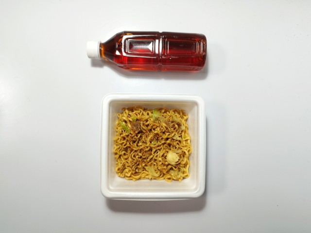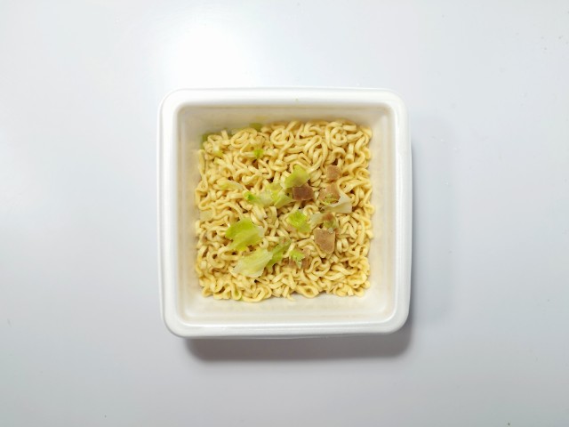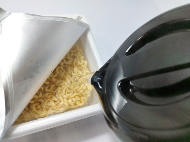 5分経ったので、お湯を捨ててフタを開けてみました。