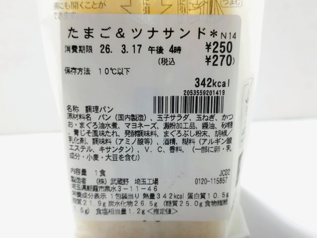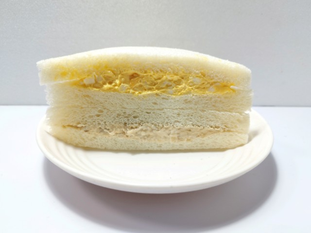 たまごサラダとツナサラダを挟んだサンドイッチです。以前の購入が2025年3月25日発売なので約1年近く経っていますが、価格は変わっていません。ほぼ通年販売の商品なので、店頭で見かけたり、食べたことがある方も多いと思います。今回、新商品ではありますが、正確にはリニューアルというのが正しいのかもしれません。そんなサンドイッチですが、たまごサラダはたまごの濃厚さと白身の食感があって、安定の美味しさです。ツナサラダはツナの旨味とマヨネーズの味わいがあって、間違いのない美味しさです。オーソドックスなサンドイッチといった感じで、特出して凄い部分はありませんが、ハズレもないサンドイッチだと思います。大きさは普通のサンドイッチサイズで、朝食や小腹が空いた時にピッタリです。ぜひたまご&ツナサンドを食べてみてください。