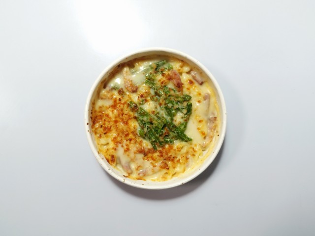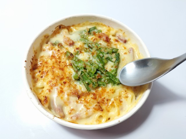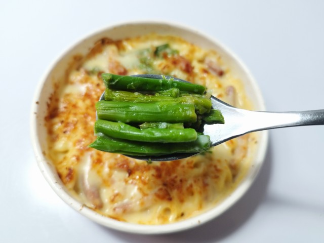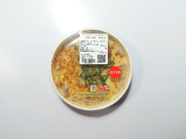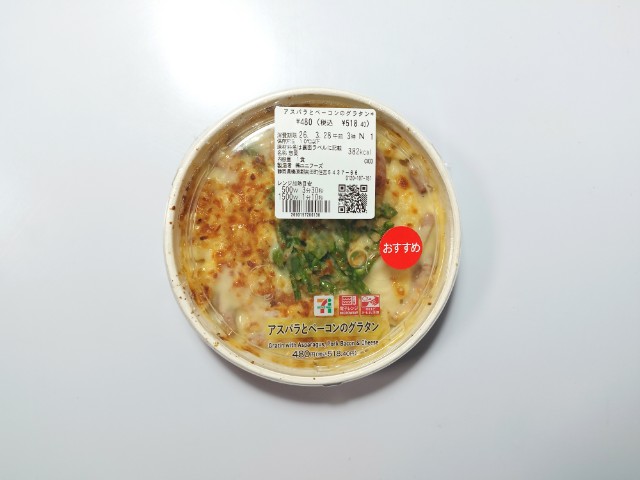 セブンイレブンの今週の新商品「アスパラとベーコンのグラタン」を食べてみました。