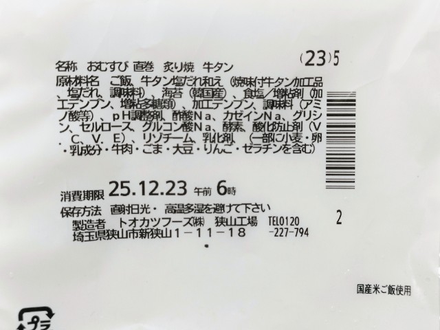 炙り焼牛タンを使ったおむすびです。以前の購入が2025年1月28日発売だったので、約11ヶ月近く経っていますが、価格が184円(税込198円)から213円(税込230円)へと変わっています。そんなおむすびですが、香ばしい牛タンほどよい食感塩ダレの旨味があって、間違いのない美味しさです。ふっくら食感ご飯海苔のバランスも良く、最後のひと口まで美味しく食べられます。大きさは普通のおむすびサイズで、小腹が空いた時主食にあと一品追加したい時にピッタリです。ぜひ炙り焼牛タンおむすびを食べてみてください。