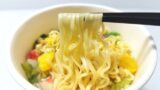 ミニサイズ冷し中華です。以前の購入が2024年8月6日発売なので約8ヶ月以上経ってますが、価格が370円(税込399.60円)から400円(税込432円)へと変わっています。そんな冷し中華ですが、スープほどよい酸味鶏ガラの旨味があって、間違いのない美味しさです。中華麺ツルツルとした食感のどごしの良さで、スープとの相性抜群です。具材ハム、錦糸玉子、きゅうりわかめなど、色々とのっているので、最後のひと口まで飽きる事なく食べられます。小容量なので、小腹が空いた時主食にあと一品追加したい時にピッタリです。ぜひミニ冷し中華を食べてみて下さい。