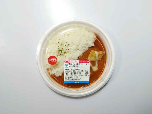 バターチキンカレーです。以前の購入が2025年6月17日発売だったので、約8ヶ月近く経っていますが、価格が550円(税込594円)から598円(税込645円)に商品名がトマトのうまみ!バターチキンカレーから完熟トマトとバターのコク!バターチキンカレーへと変わっています。そんなバターチキンカレーですが、カレーソースはトマトの酸味とスパイスの味わい、バターのコクがあって、間違いのない美味しさです。辛味はほどよく、ご飯とのバランスも良いです。トッピングのチキンは鶏の旨味とほどよい弾力で、味や食感のアクセントになっています。内容量は1食分にちょうどよく、お腹も満たされます。ぜひ完熟トマトとバターのコク!バターチキンカレーを食べてみてください。