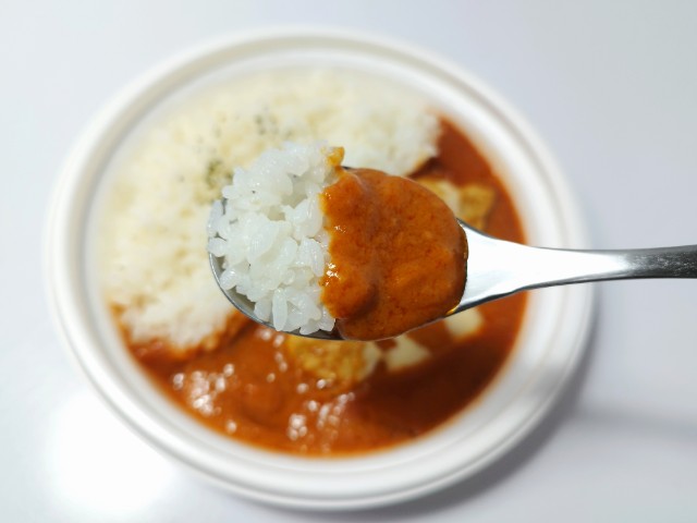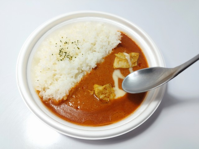 ファミリーマートの今週の新商品「完熟トマトとバターのコク!バターチキンカレー」を食べてみました。