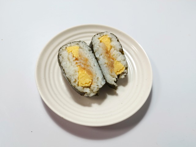 辛子明太子と玉子焼きのおにぎりを美味しくいただきますっ!!