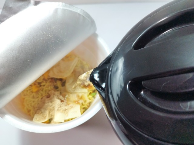 お湯を入れて、フタをして3分待ちます。