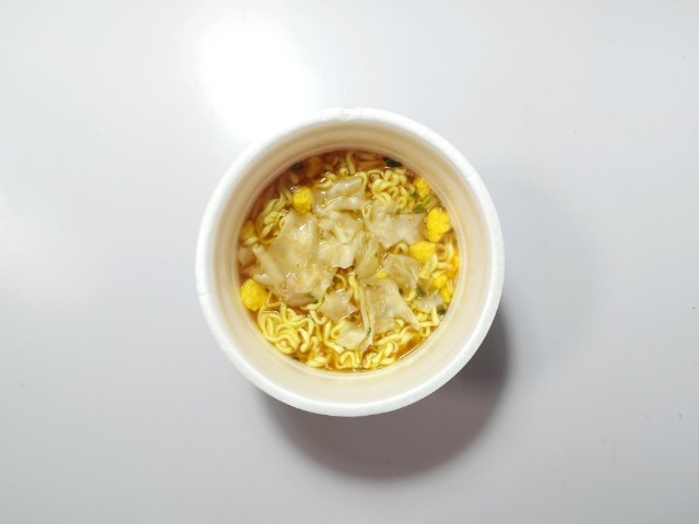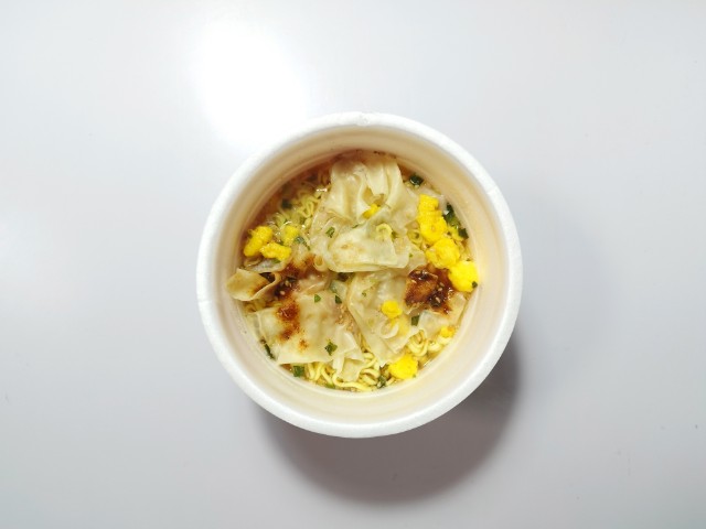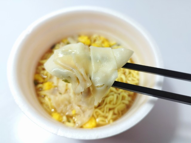 マルちゃんのワンタンが入ったカップ麺です。以前の購入が2025年4月1日発売だったので、約1年近く経っていますが、価格は変わっていません。そんなカップ麺ですが、スープは鶏の旨味と醤油の風味、ほのかな酸味があって、安定の美味しさです。麺はなめらかな食感とほどよい弾力があって、箸がどんどん進みます。ワンタンはつるりとした食感とのどごしの良さで、スープとの相性抜群です。そのままでも美味しく食べられますが、ラー油やごま油を足して、味変しながら食べても美味しいと思います。内容量は1食分にちょうどよく、お腹も満たされます。ぜひしょうゆ味のワンタンラーメンを食べてみてください。