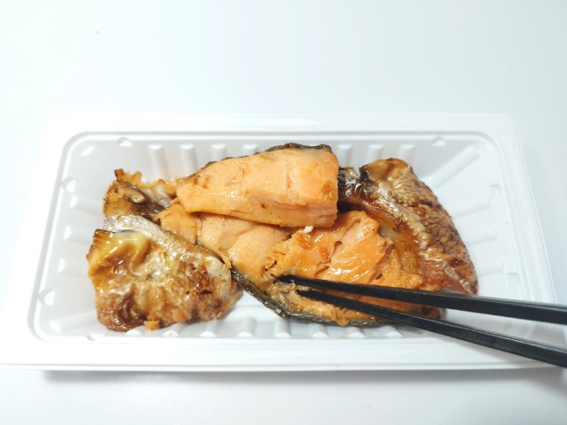 銀鮭の切り落としです。以前の購入が2024年12月3日発売だったので、1年以上経っていますが、価格が328円(税込354.24円)から298円(税込321.84円)へと変わっています。ほぼ通年販売の商品なので、店頭で見かけたり、食べた事がある方も多いと思います。今回、新商品ではありますが、正確にはリニューアルというのが正しいのかもしれません。そんな銀鮭の塩焼切落しですが、銀鮭はたっぷりの脂とふっくらとした身、ほどよい塩味があって、美味しいのひと言です。切り落としなので形はバラバラですが、中には鮭ハラスと思える部位もあって、ジューシーな味わいで、さらに箸が進みます。大きさは一人分にちょうどよく、おつまみやご飯のおかずにピッタリです。また、お弁当やおにぎりの具材としても活躍すると思います。ぜひ銀鮭の塩焼切落しを食べてみてください。