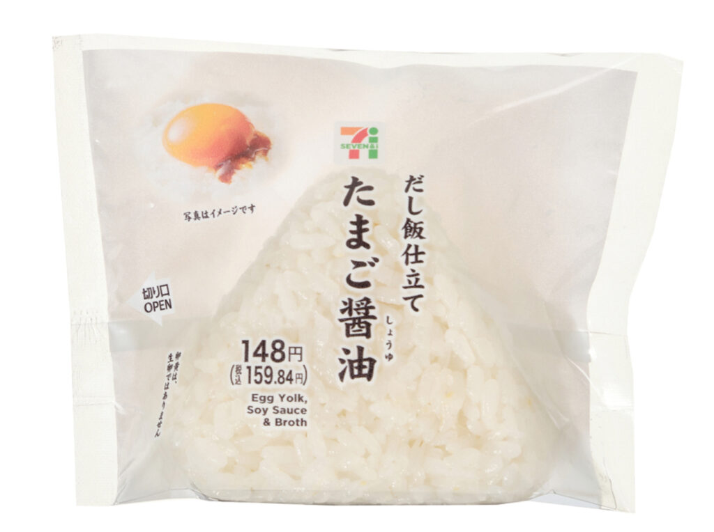 原材料高騰により、売価(税抜)138円から148円に変更します。濃厚な卵黄ソースと醤油タレを組合せた、たまごかけごはん風のおむすびです。